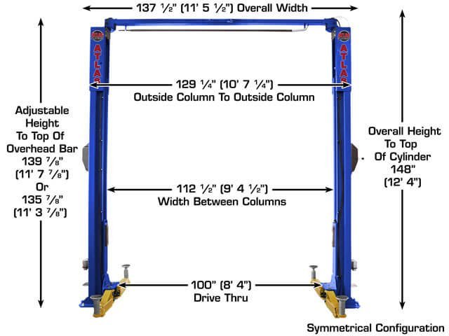 | Overall Height | 135 7/8″ (11’ 3 7/8”) or 139 7/8” (11’ 7 7/8”) – (CYLINDER EXTENDS TO 12’ 4”) | |