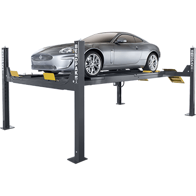 The Mayflower Blacksmith Four Post Lift Pro 8000 is a heavy-duty car lift designed for storage and service. It has a capacity of 8000 lbs and features a four post design that provides stability and strength for lifting vehicles. The lift can be used for storing vehicles and for performing maintenance and repair work on cars and trucks. The Pro 8000 has a clear floor design for easy access to the undercarriage and wheels, and its height can be adjusted to accommodate a wide range of vehicles.