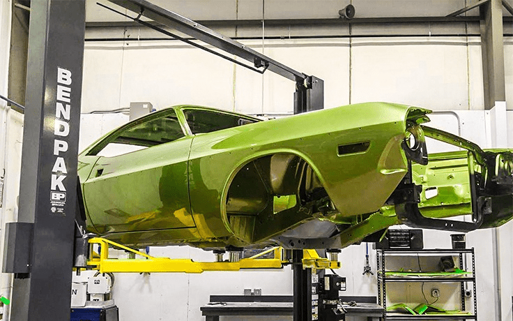 The D2-12C is Dannmar’s closed-top model, thus providing clear floor convenience. The closed-top/clear floor two-post lift allows uninterrupted floors so that you can roll floor jacks, toolboxes, and other equipment underneath the elevated vehicle without having to travel over and bang through a floor-mounted hydraulic line panel. This lift has a big 12,000 lb. lifting capacity. This lift routes the operating hydraulic lines up and across, 14 feet height hose routing above the floor.