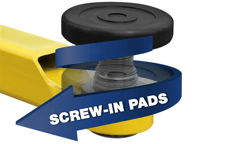 - Double‐telescoping screw pads offer increased versatility
