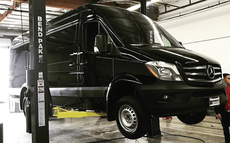HDS-14LSXE is a high-capacity alignment lift with a capacity of 14,000 lbs. It is specifically designed for extended vehicles such as limousines and includes turnplates and slip plates.